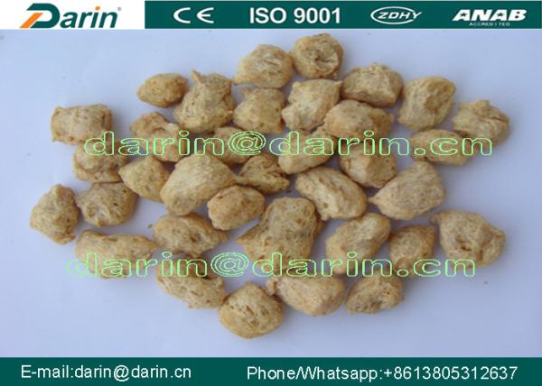 3. Produtos: Esta linha pode ser usada para produzir as pepitas da soja, TVP/TSP, pedaços da soja ajustando os moldes da extrusora; entrementes pode produzir o cereal, petiscos ajustando os parafusos da extrusora