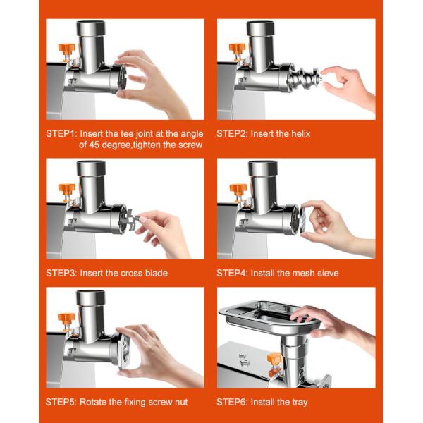 4. carne da alimentação na câmara de moedura com empurrador especial da carne que foi incluído com sua máquina. Nunca dedos do uso, mãos, ou alguns outros objetos.