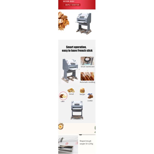 o rolo 3.The do moldador do baguette é feito do material de aço inoxidável forte e durável; uniformemente organização da massa após moldar.