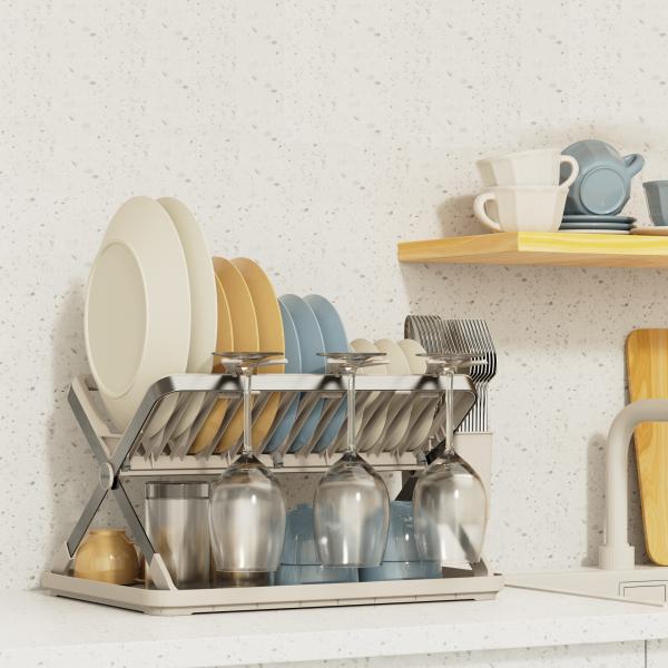 Rack de pratos de cozinha de arame metálico ajustável não dobrável para